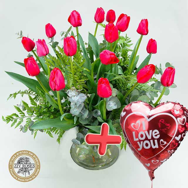 זר טוליפים אהבה בשחקים +בלון אהבה