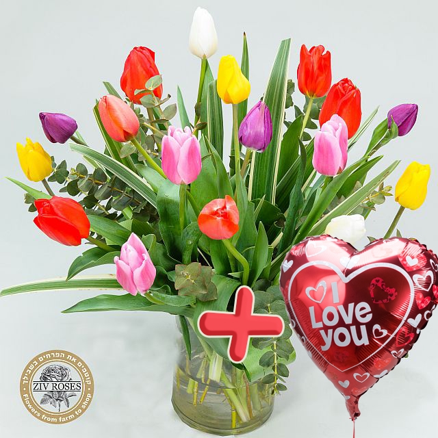 זר טוליפים להתרגש ביחד +בלון אהבה